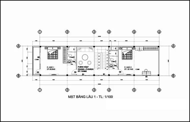 Bản vẽ thiết kế công năng mẫu thiết kế nhà phố 2 tầng 1 tum 5x20m kinh doanh  Mẫu thiết kế nhà phố 2 tầng nằm trong khu đất liền kề đang cần giải tỏa để làm đường lớn; Nên giải pháp xây nhà là móng cao 75cm đến 1m; Lỡ sau này có làm đường mới dù nâng lên thì vẫn cao ráo thông thoáng.  Bản vẽ mẫu nhà này phía sau còn khoảng đất trống hơn 1m giáp với dãy nhà trọ cấp 4; Và có lối vào ở cửa sau. Nên không gian thiết kế chia thành 2 không gian chính. Phía sau thiết kế 1 bếp và khách cho chủ nhà sinh hoạt riêng có cửa khóa trái. Phía sau không liên quan đến phần cho thuê mặt bằng phía ngoài. Tương lai gần vài năm sau khi không cho thuê có thể cải tạo thành 1 phòng ngủ trệt được. Tiện lợi là không phải đập bỏ hay phá vỡ kết cấu.  Mẫu thiết kế nhà phố  Diện tích tầng trệt có phòng kinh doanh thiết kế rộng 42 m2. Phòng khách phía sau cầu thang đi vào rộng hơn 20 m2 và bếp ăn rộng 19,6m2 có chỗ để xe máy. Còn lại cầu thang thiết kế rộng 2.2m chân cầu thang có vệ sinh và bồn rửa. Khác biệt nữa chính là không gian kinh doanh cạnh cầu thang trước mắt. Vách ngăn nhôm kính ngay phía ngoài đi vào để che cầu thang; Nhưng khi khách thuê có thể ra sau vệ sinh được. Bản vẽ không gian tầng lầu 1 nhà ống 2 tầng 1 tum 5x20m  Không gian mẫu thiết kế nhà phố hiện đại 2 tầng 1 tum có diện tích sàn xây dựng hơn 110m2. Phía ngoài có thêm ban công lan can kính cường lực 10 ly khung thép. Tiện ích bên trong thiết kế có 1 phòng ngủ master phía sau rộng hơn 32 m2; Có phòng tập Gym và bàn làm việc, phòng thay đồ đầy đủ. Phòng sinh hoạt chung bố trí thiết kế cạnh cầu thang lối lên từ tầng trệt diện tích rộng gần 14m2. Có thể tiếp khách riêng tại đây hay thư giãn chuyện trò.  Mẫu thiết kế nhà phố  Ngoài ra ngôi nhà còn có 1 phòng ngủ với wc khép kín diện tích rộng lên đến 28,8m2 và 1 phòng vệ sinh chung tắm rửa tiện nghi. Khoảng thông tầng giếng trời ở ô hình chữ nhật có 2 đường chéo sát vách. Mặt bằng bản vẽ mẫu thiết kế nhà phố 2 tầng 1 tum cho tầng mái và tầng 2  Khu vực tầng 2 mẫu nhà ống đẹp có diện tích sàn xây dựng 90m2. Tính nếu đổ thêm 1 tấm thiết kế có sân thượng mái che ở bên ngoài rộng 27m2. Ở khu vực sân thượng, bản vẽ kích thước dưới đây tùy theo mục đích sinh hoạt; Có thể linh động thiết kế tiểu cảnh sân vườn xanh hay không gian thư giãn tiếp khách ngoài trời với treo trang trí các chậu Lan, hoa hồng leo, dàn cây kiểng… Nhằm tăng thêm mảng xanh cho kiến trúc nhà phố.  Mẫu thiết kế nhà phố  Không gian còn lại, Chị Mỹ còn thiết kế có thêm 1 phòng ngủ 18,2m2, một phòng thờ 21,6m2 và 1 sân phơi có góc để máy giặt phía sau nhà rộng 13,4m2. Có thêm 1 phòng vệ sinh chung ở đây. Trên tầng mái thiết kế bằng bê tông cốt thép, có tấm kính lấy sáng cho giếng trời. Đặt bồn nước Bình Minh 1500 lít hay năng lượng mặt trời nếu cần. Bản vẽ thiết kế nhà ống 2 tầng 1 tum 3 phòng ngủ 5×20  Mẫu thiết kế nhà phố đẹp được thiết kế theo phong thủy hướng chính Đông hơi ghé Bắc 8 độ. Hướng chính vẫn là chính Đông. Chị Mỹ lấy tuổi con trai chị sinh 1996 để xây bởi sau này ngôi nhà này có thể sẽ cho con trai. Chiều cao cốt tầng nhà này từ dưới lên trên lọt lòng 3.6m đến 3.4m. Phần móng nhà xây cao 1m dự phòng ở giữa có 2 giếng trời thông tầng; rất mát mẻ nhiều gió đón từ nhiều hướng bên ngoài vào.  Hồ sơ bản vẽ mẫu thiết kế nhà phố 3 phòng ngủ có đầy đủ chi tiết từ điện nước kết cấu full. Chúng tôi chọn 1 vài bản vẽ chính như mặt đứng, mái, kích thước cầu thang, chi tiết cửa, ban công.. Ghép thành 1 hình ảnh để quý có 1 cái nhìn khái quát. Vì ngôi nhà đang trong quá trình xây nên không đưa hình ảnh bản vẽ chi tiết rõ ràng lên mạng được để giữ bản quyền cho gia đình chị.