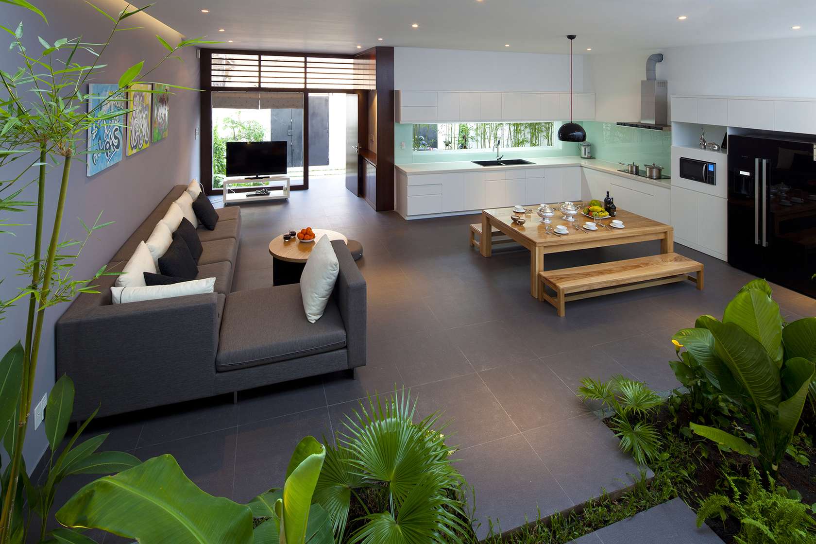 Công trình biệt thự nhà vườn tạo ra môi trường sống xanh, đem lại cuộc sống tiện nghi và thoải mái cho cả gia đình. Vị trí xây dựng tại Quận 7.
